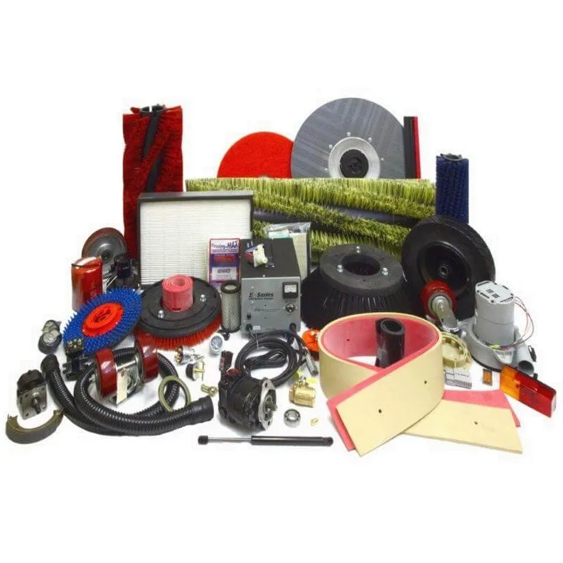 Cкребки (стяжки, резиновые лезвия, сквиджи), щетки для поломоечных машин: дисковые и роликовые, вакуумные моторы (турбины), пады и падодержатели, шланги, зарядные устройства (встроенные и внешние), АКБ литий/гель/кислотные, колеса приводные и опорные, насосы, пистолеты, грязевые фрезы, форсунки, копья, переходники и др